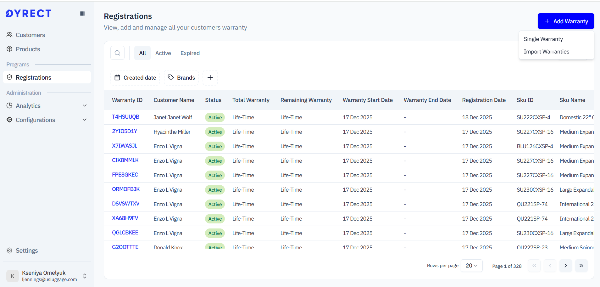 Warranty → Warranty List