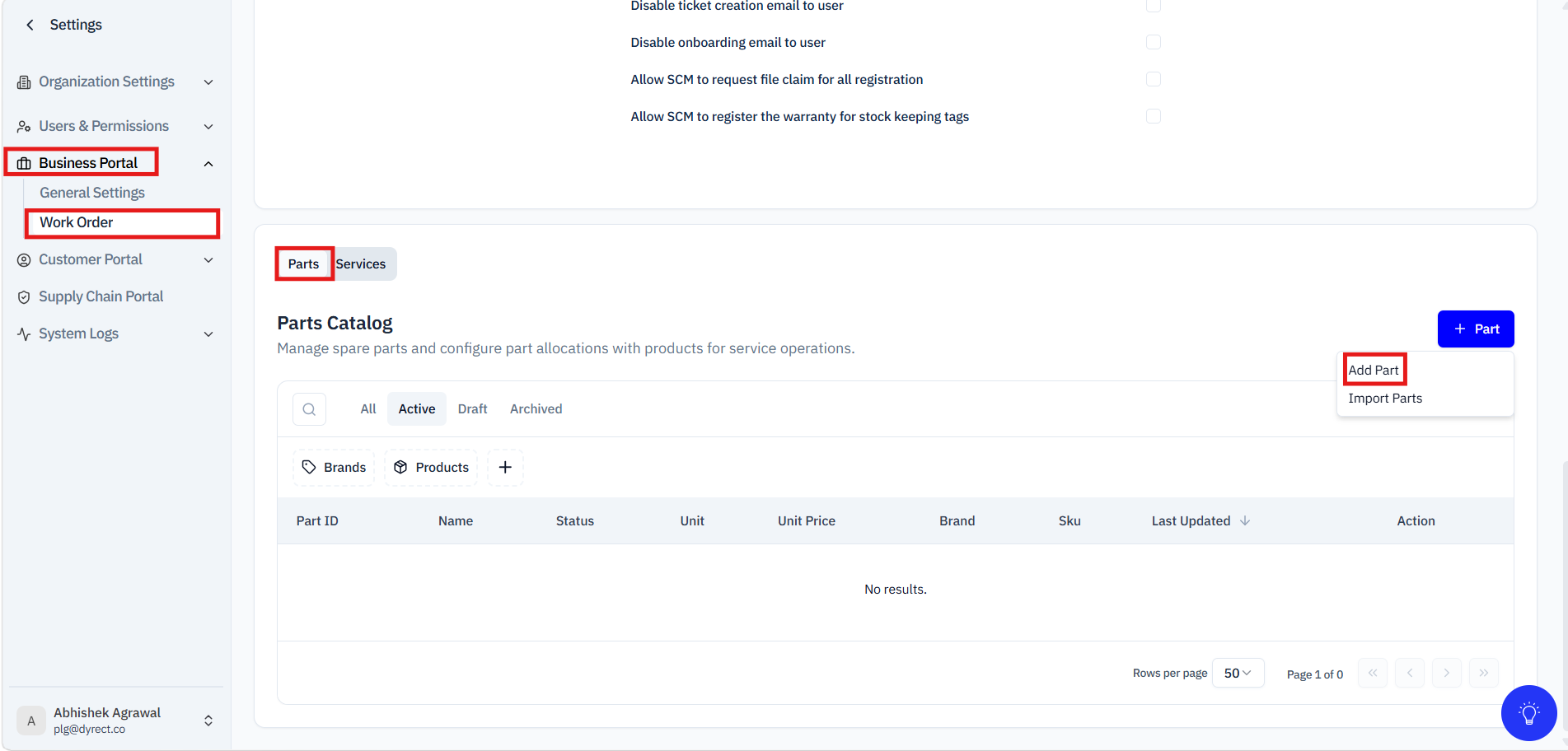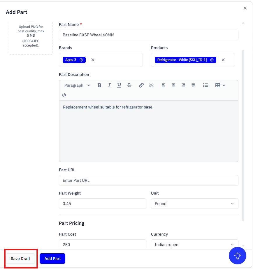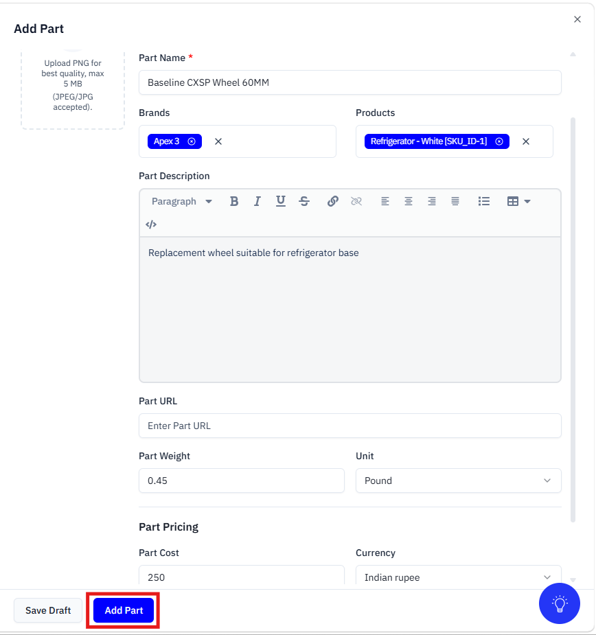 Adding parts to the Parts Catalog allows businesses to manage spare parts used in service operations. This helps in tracking part usage, associating parts with products and brands, and ensuring smooth service and maintenance workflows.