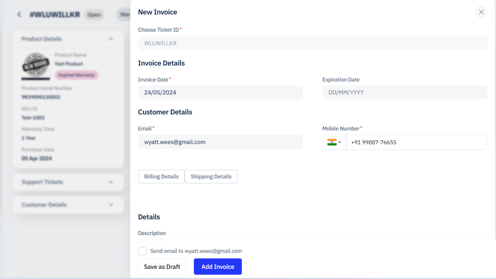 Return to the Quotation & Invoice section. The invoice will be saved as a draft.