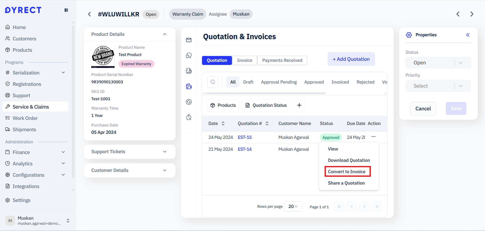Creating a quotation (estimate) in Dyrect helps you share costs with customers and get internal approval before proceeding with repairs or replacements. This guide explains each step clearly so you can generate, save, or submit quotations smoothly ...