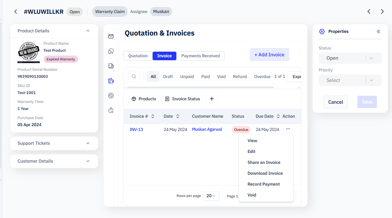 Click on the three dots in front of the invoice to view, edit, Download Invoice, mark it as paid, or void it.