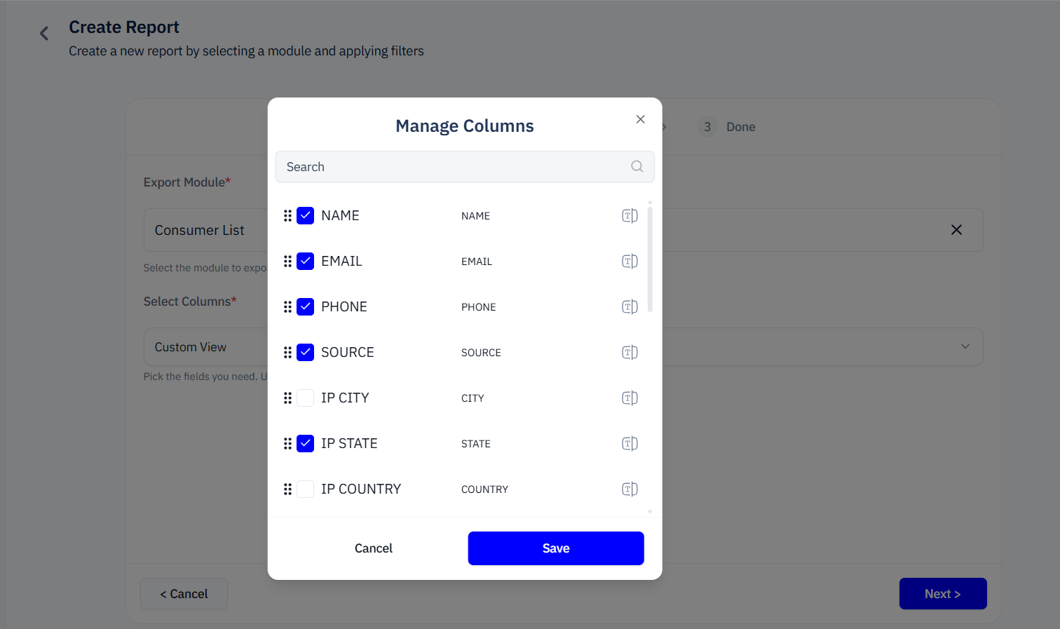 2. Can I choose only specific fields for the report?