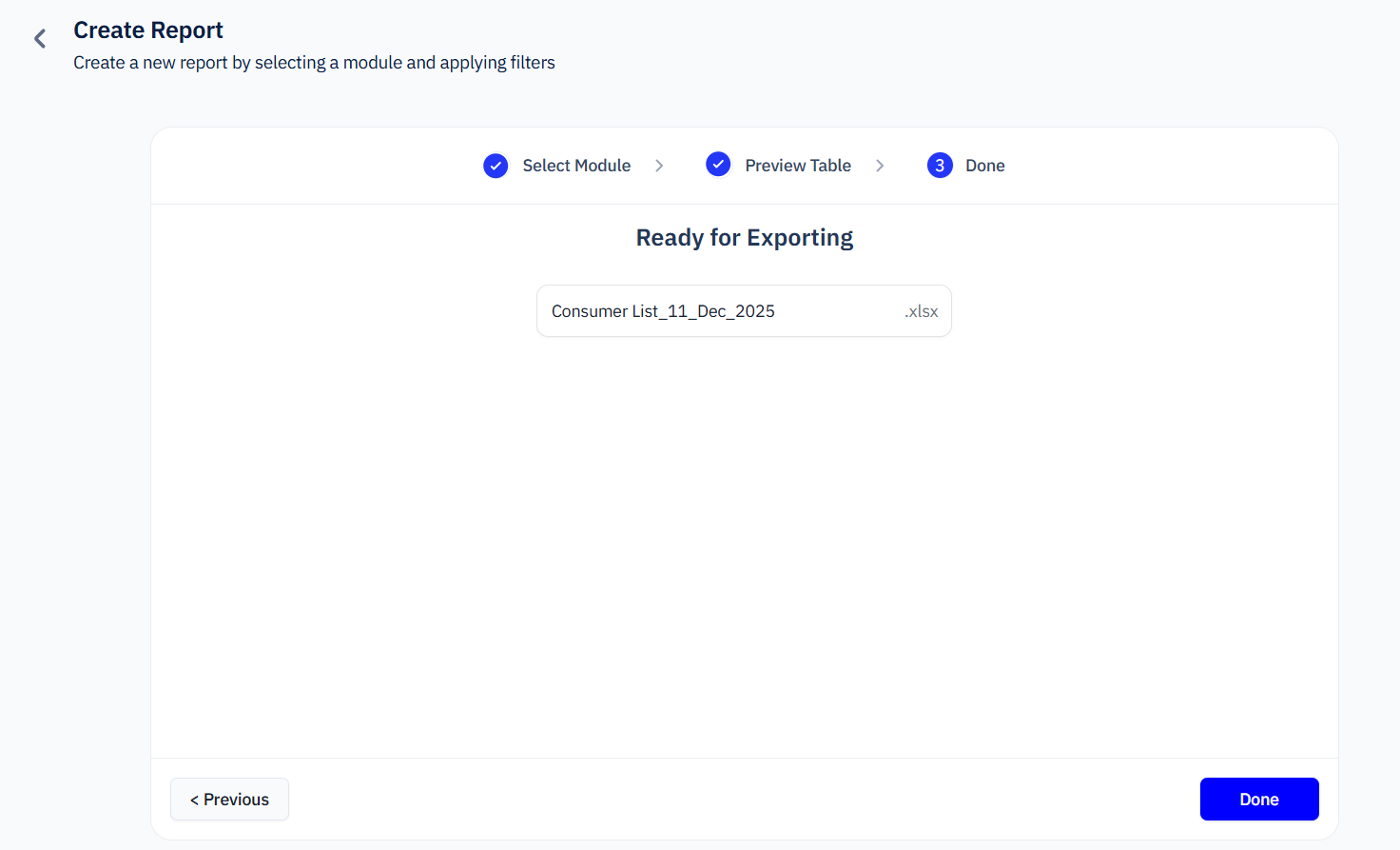 Most exports are generated instantly, but larger datasets may take a few minutes.