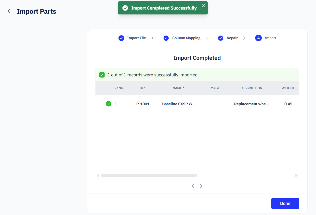 Importing parts in bulk allows businesses to quickly add multiple spare parts to the Parts Catalog using an Excel file. This method saves time, reduces manual entry, and ensures consistent data management for service operations.